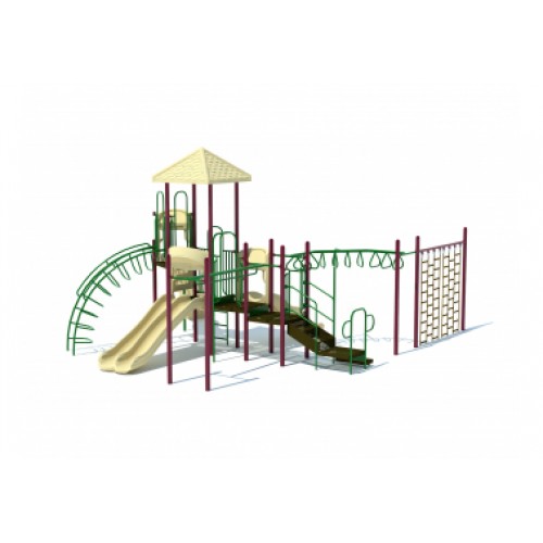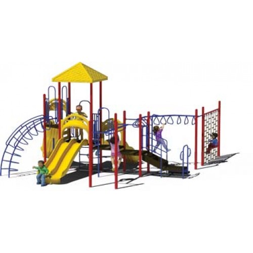 Adventure Series Playground Structure PS3-29134This model includes: ADA Transfer Station, Parallel Bar Horizontal Overhead Ladder, Sliding Pole, Triple Rail Slide, 24" Panel Ladder, Deep Rung Arch Climber, Wave Slide, Square Shingle Roof, Vertical Ladder with Gate, Wave Slide, 90 Degree Tri Rung Horizontal Overhead ladder, Chain Climbing Wall.