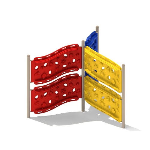 Name: Triple Wave Series: Roto Climbers Age Group: 5-12 # of Play Activities: Child Capacity: 16-20 Use Zone: 23'-11" x 22'-6" Max Fall Height: 8'-6" Equipment or Structure Size: 11'-9" x 10'-4" x 8'-6" Structure Weight 765