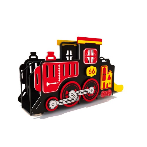 Name: Lukas Locomotive Series: Action Vehicles Age Group: 2-12 # of Play Activities: Child Capacity: 2-4 Use Zone: 20'-5" x 15'-2" Max Fall Height: 0'-8" Equipment or Structure Size: 8'-5" x 3'-2" x 5'-2" Structure Weight 770