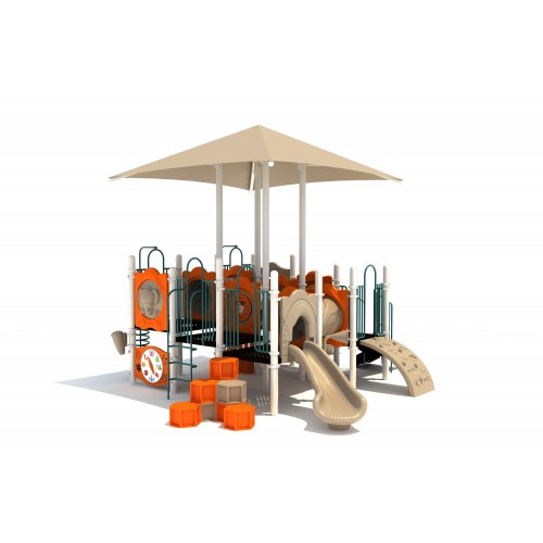 Maximo playgrounds are artistically crafted with your choice of 5.0" OD galvanized steel or aluminum support posts which are, along with all of the steel handrails, barriers, gates, and climbers, coated with a baked-on polyester powder coat finish for a lifetime of protection against the elements. All steel decking and stairs are encased in a longĀlasting PVC coating. The three-dimensional plastic slides, panels, roofs, and climbers are rotationally molded using virgin compounded resins that feature greater UV breakdown resistance over dry blended resins.The HOPE sheet plastic climbers and activities are specifically manufactured at the factory for high-quality control and not purchased from a supplier.
