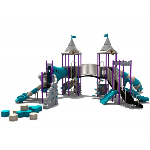 Theme Play playgrounds furnish themed based play components that give you the opportunity to create a playground that mimics a castle, a sailing ship, a wild west fort or a space station. With its large supports, broad platforms and a wide spectrum of colors to choose from, a Theme Play playground can be the focal point of your family park. Based on Maximo, this system can handle end-user volumes without constricting the excitement and enthusiasm found in the flow of play. The time-tested reliability of the materials sourced for and combined with the skilled craftmanship at the factory, produces equipment that is durable and requires less maintenance over time, so that your play space remains fun, inviting and open to the public.